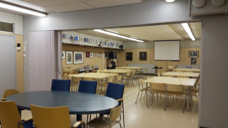 Kerhotilassa on nykyaikainen keittiö ja kahviastiasto. Tila on helppo kalustaa noin 60 hengelle. Kalusteet ovat kerhonuoneessa helposti käyttöön otettavissa.